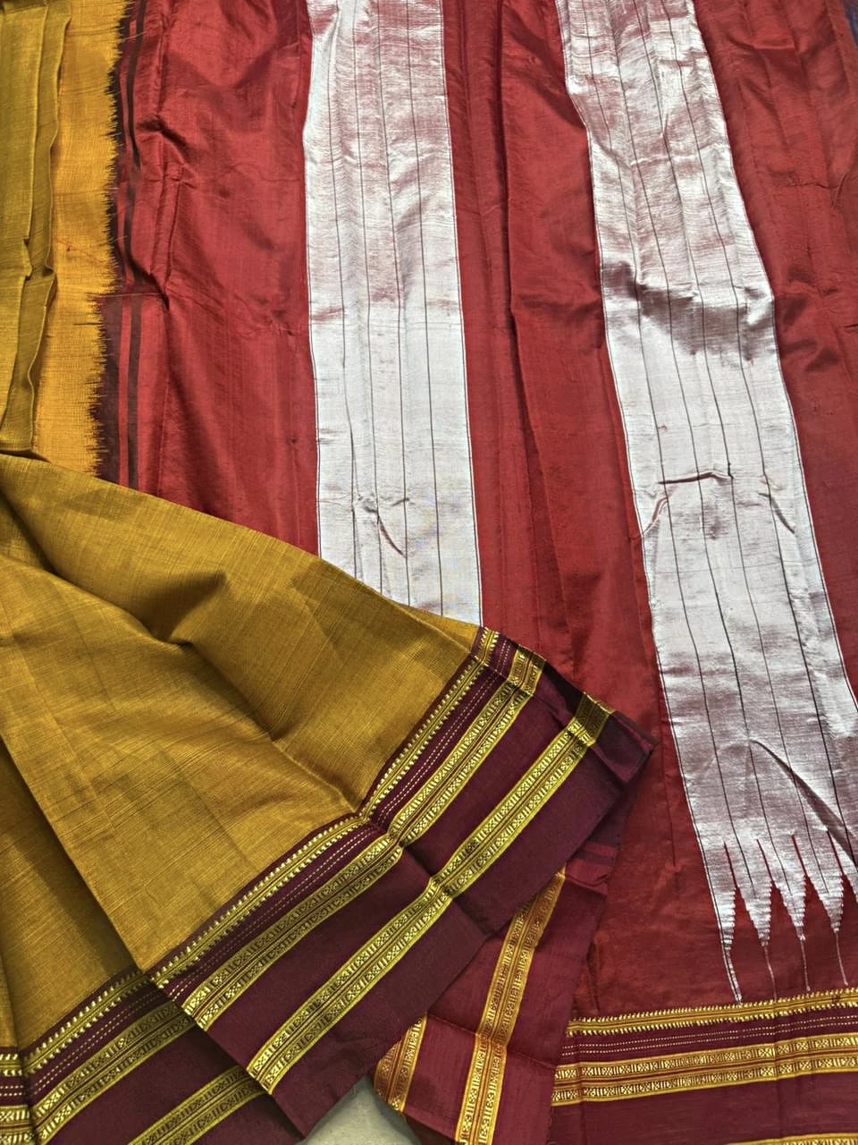Being a 100% pure handloom Ilkal saree, every thread reflects skilled craftsmanship and heritage weaving techniques passed down through generations. The generous 7.2-meter length with a running blouse piece allows comfortable and versatile styling.