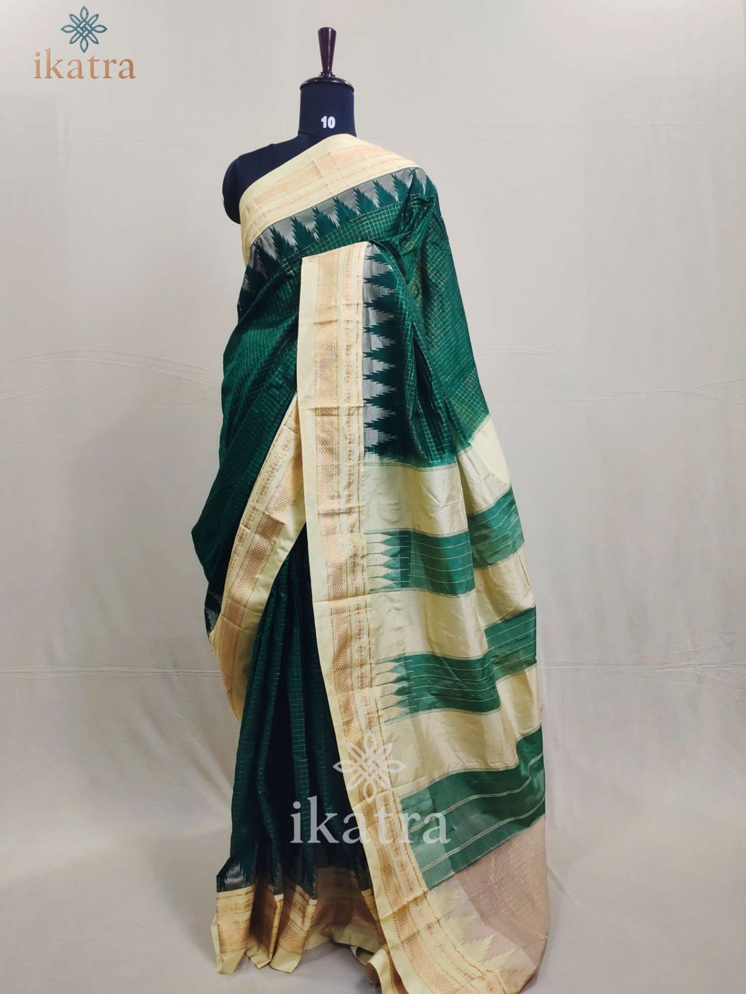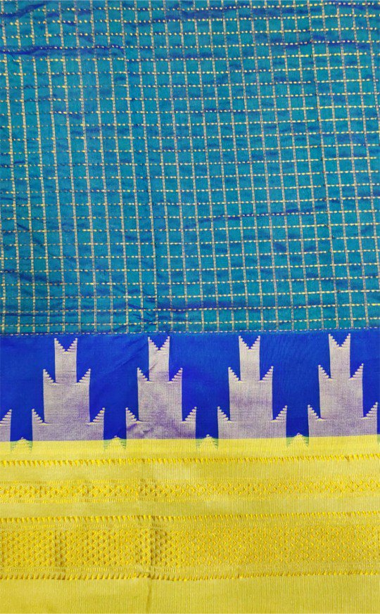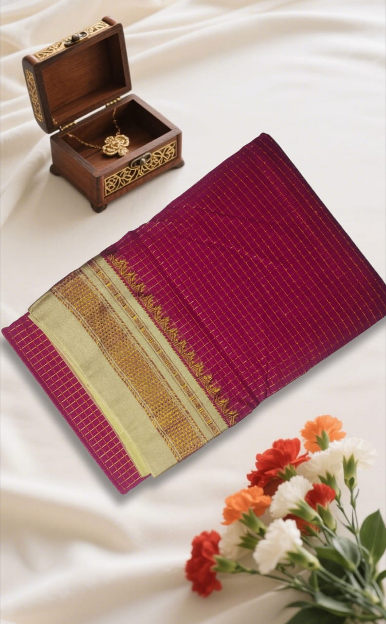 Experience timeless elegance with this Temple with Jari Chadurang Ilkal Saree, crafted from premium mercerised cotton for superior comfort and durability. Featuring a classic chikki paras border, rich catlon pallu, and a stylish contrast checks blouse piece, this saree is perfect for daily wear, office wear, festive occasions, and traditional celebrations. Length: 6.2 meters.