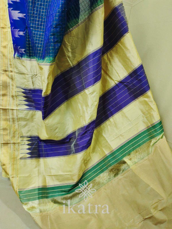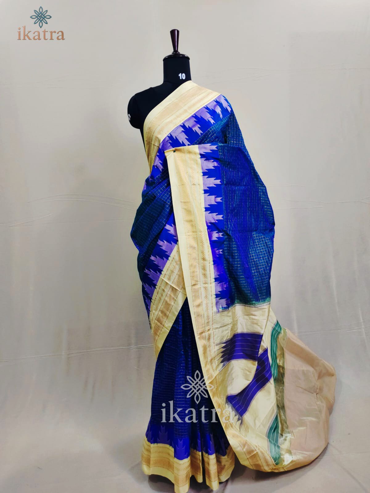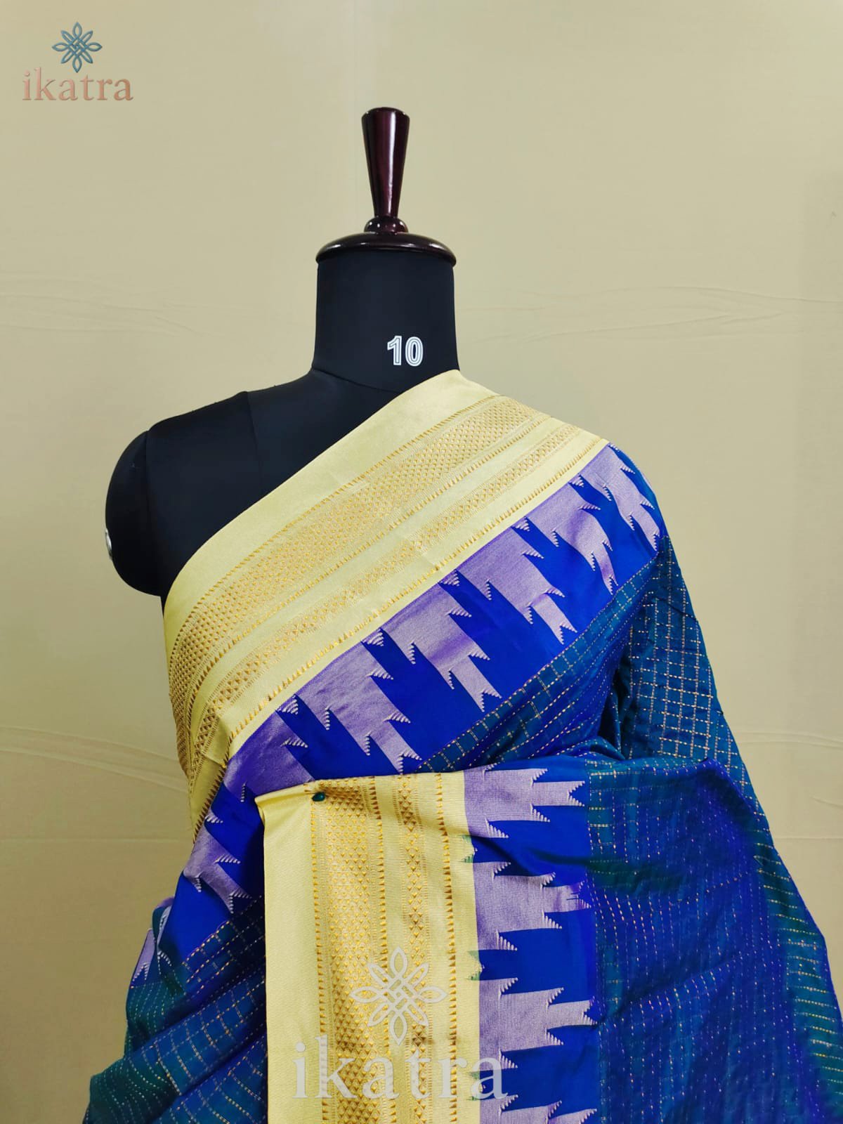 Blue Saree Temple With Jari Chadurang Ilkal Saree | ikatra