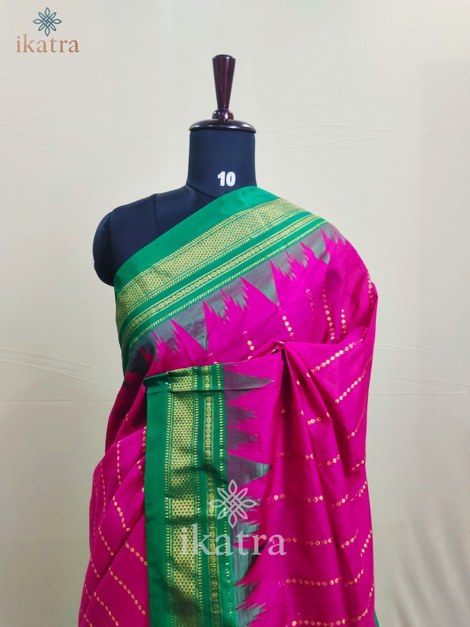 Borderless with Horizontal Jeri Line Ilkal Saree – Cotton Silk with Tope Pallu