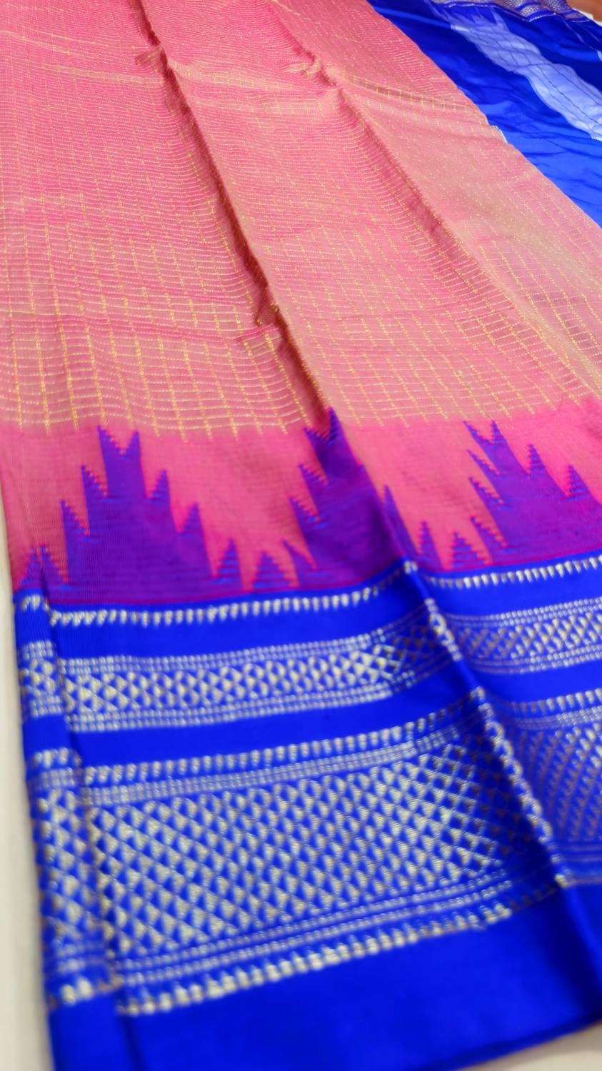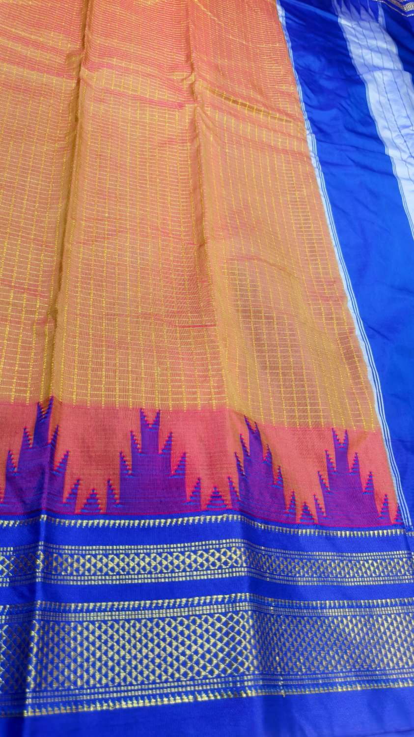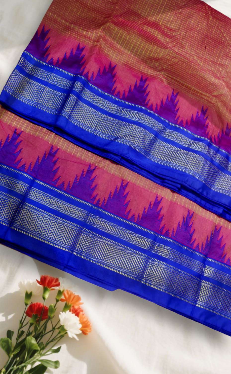 Ilkal Checks Chaduranga Temple Cotton Silk Saree With Jari – Ikatra