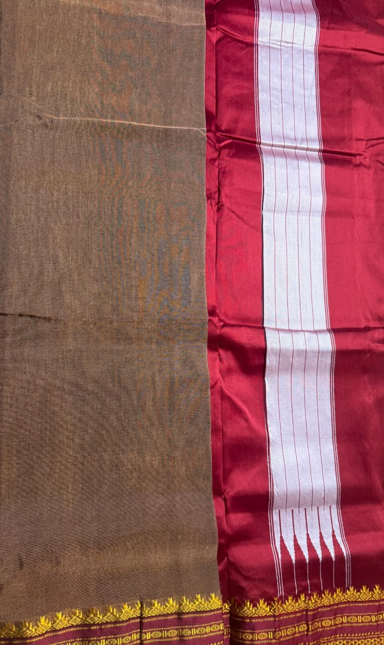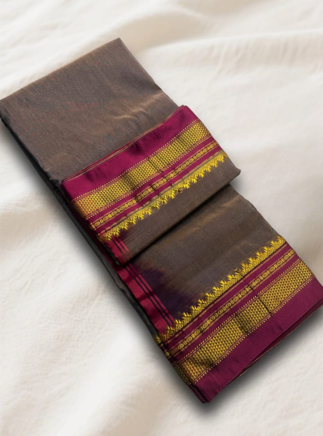Chocolate and Red Tana Warp Plain Ilkal Saree
