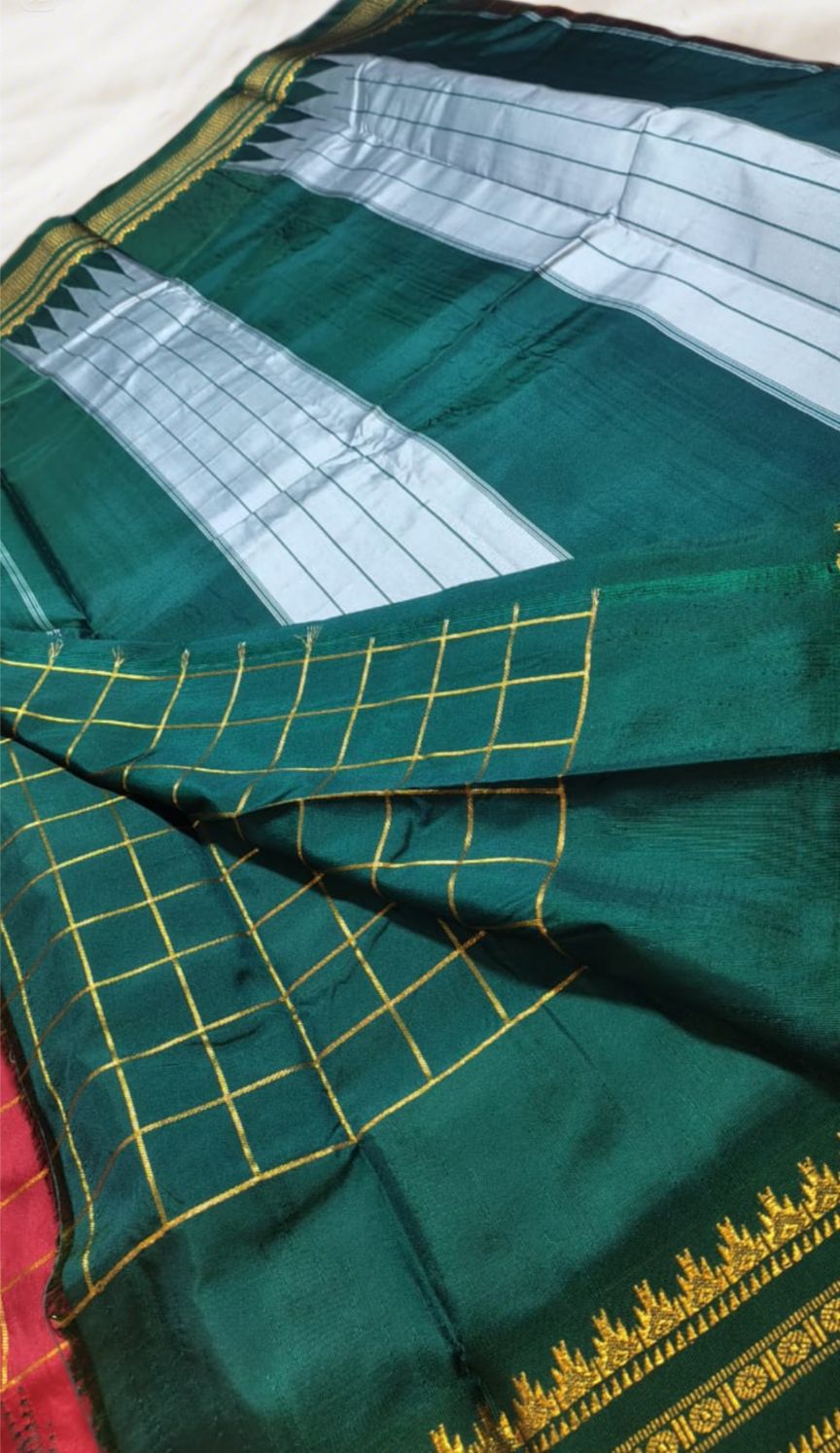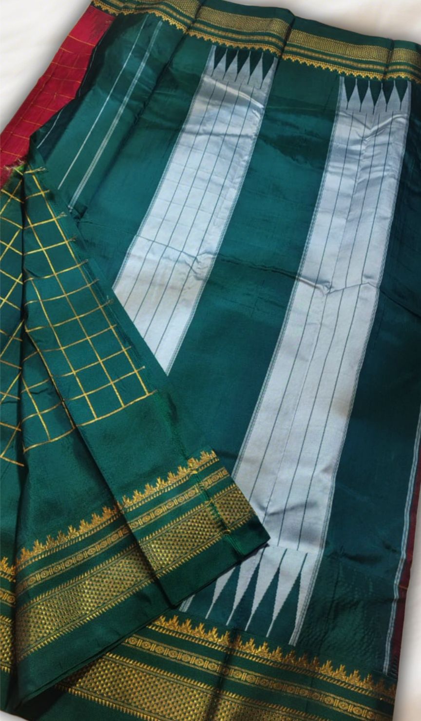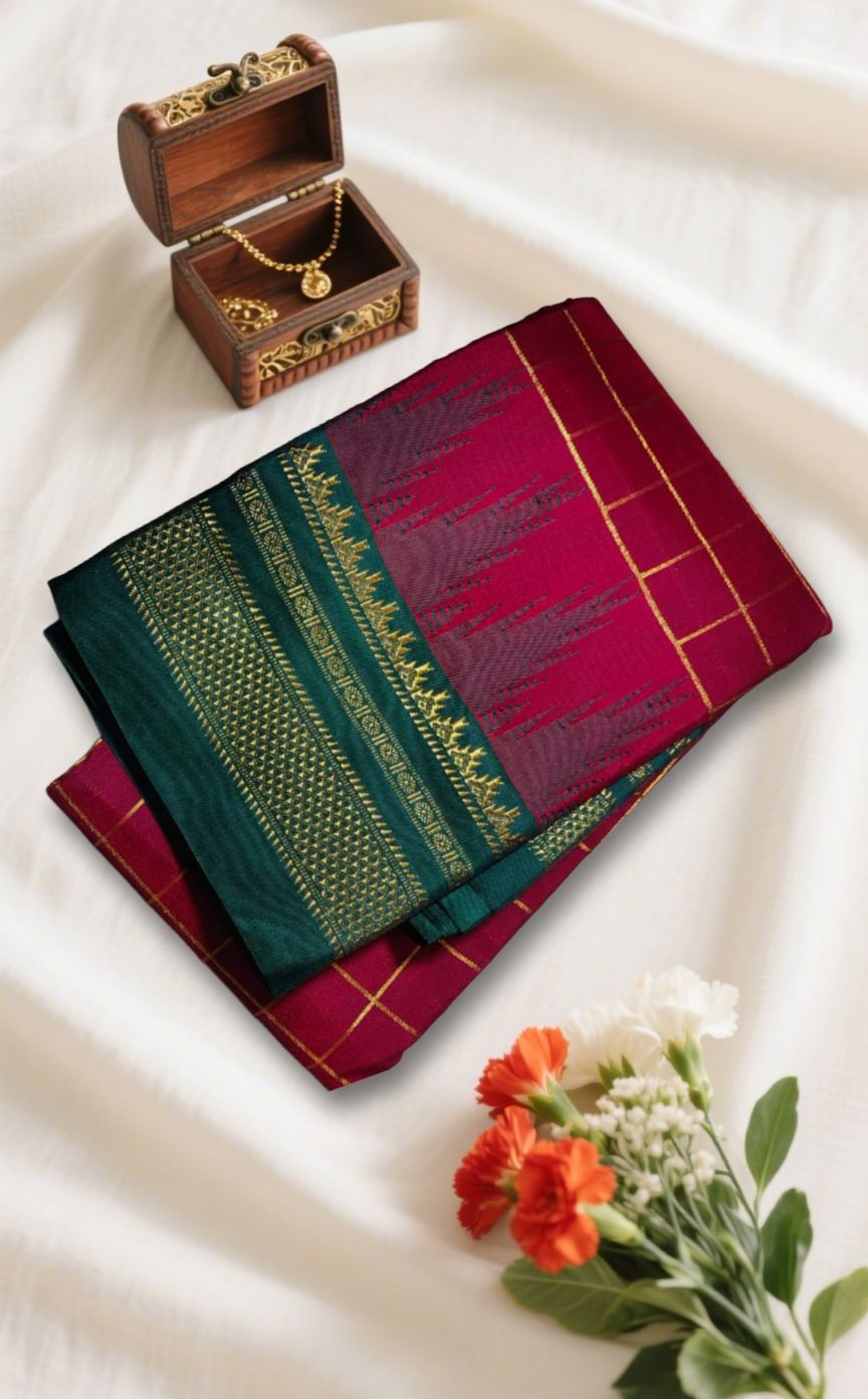 Deep Red Traditional Ilkal Jari Checks Saree with Temple Border