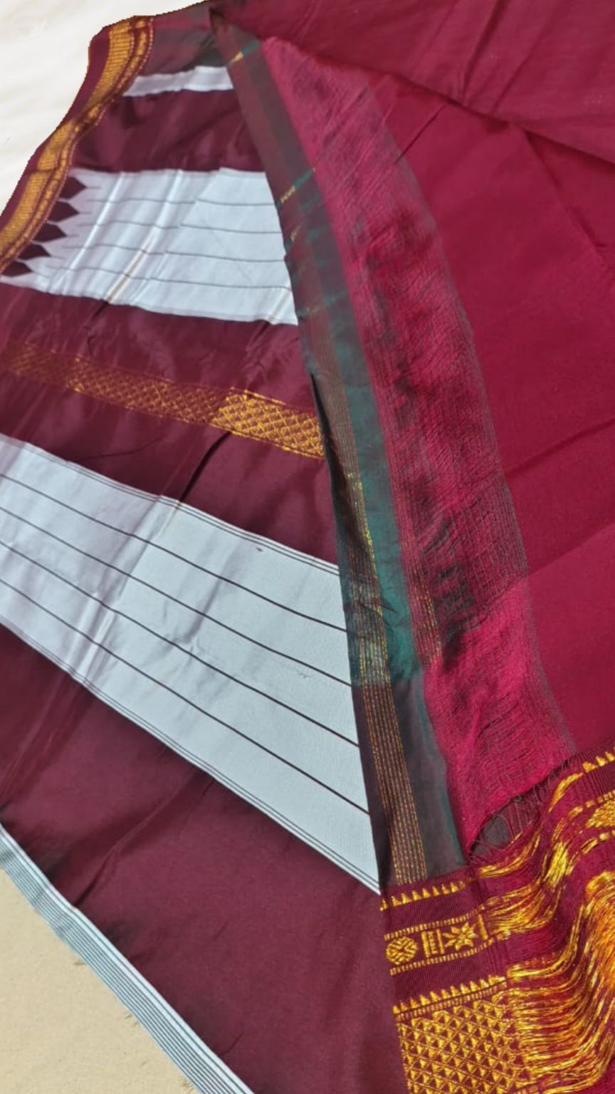 Borderless with Horizontal Jeri Line Ilkal Saree – Cotton Silk with Tope Pallu