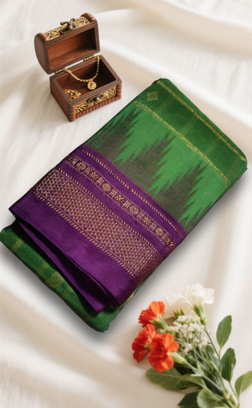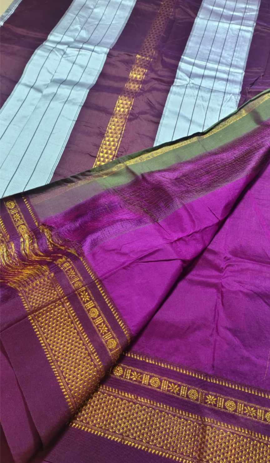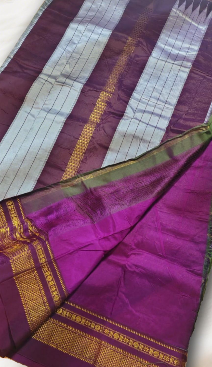 Purple Colour Saree Temple with Jari Chadurang Ilkal Saree – Super Quality Mercerised Cotton