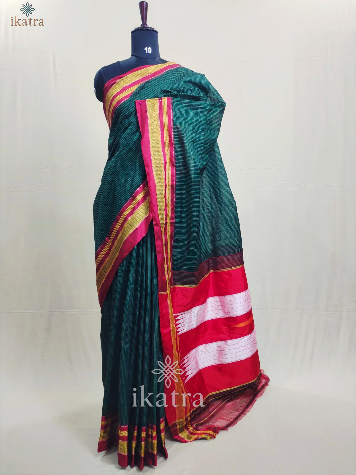 Red and Green Mix Tradional Ilkal Saree With Chikki Paras Border | ikatra