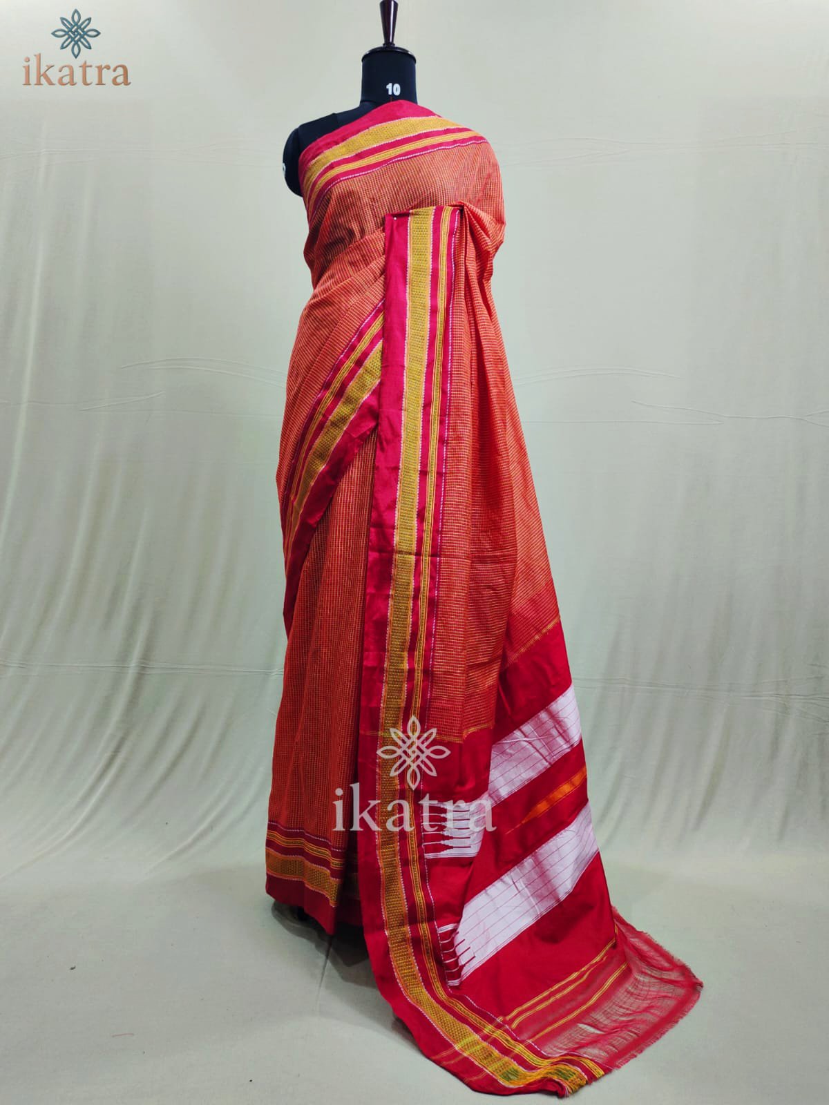Orange Tradional Ilkal Saree With Chikki Paras Border | ikatra