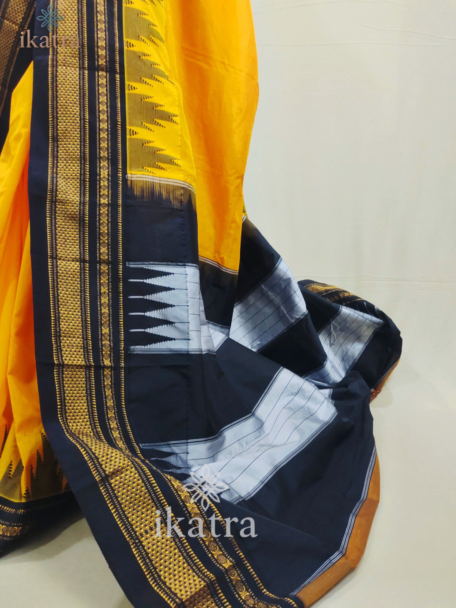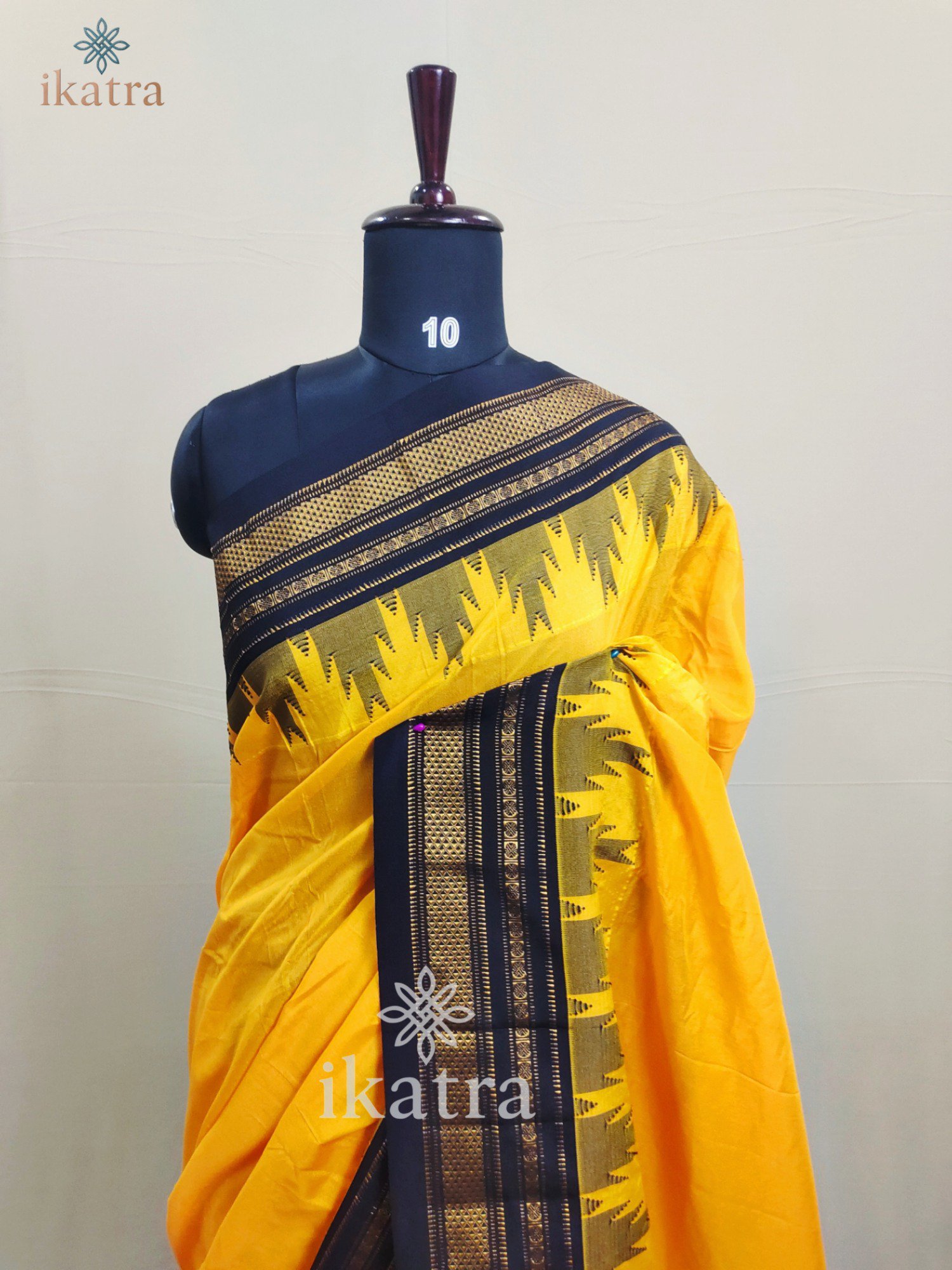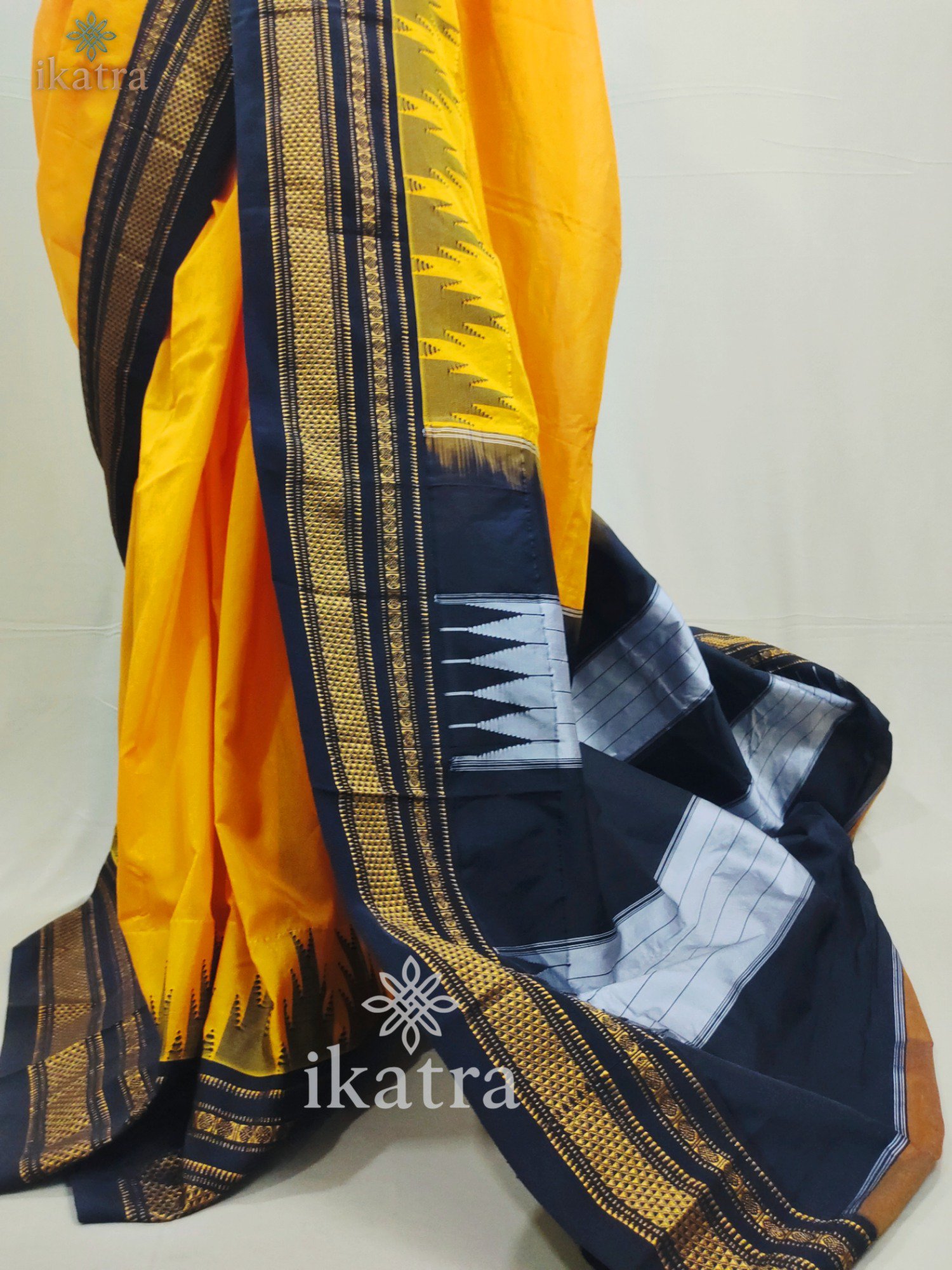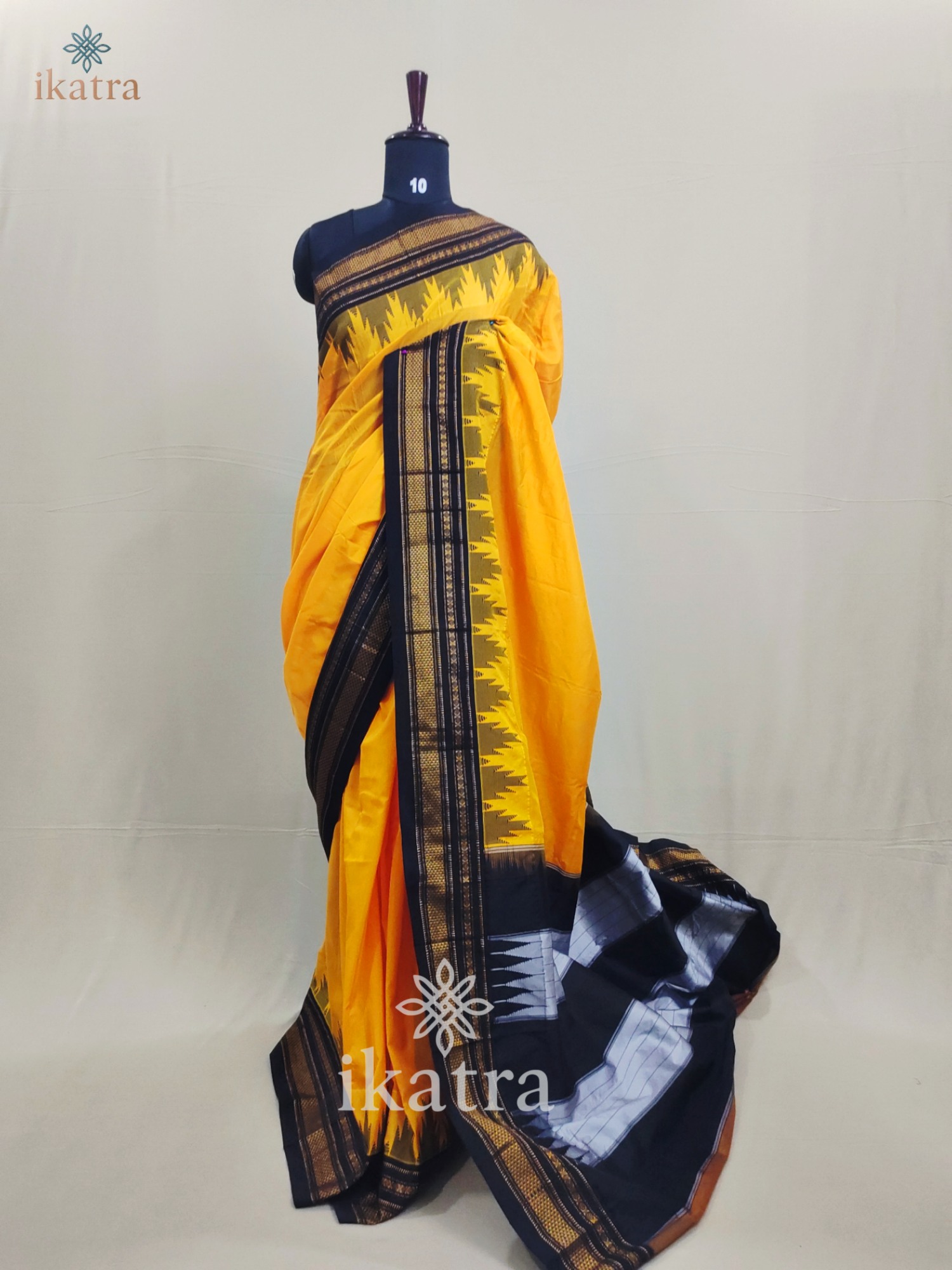 Ilkal Temple Gadwal Saree Experience the timeless charm of traditional craftsmanship with our Ilkal Temple Gadwal Saree. Crafted from premium mercerised cotton, this saree offers a soft texture, excellent durability, and all-day comfort.The saree is beautifully highlighted with a classic Chikki Paras border, adding an elegant and authentic touch inspired by traditional Ilkal weaving. Paired with a contrast blouse, it creates a perfect balance of tradition and modern style. Ideal for daily wear, festive occasions, and cultural gatherings, this saree reflects grace, simplicity, and heritage in every drape.