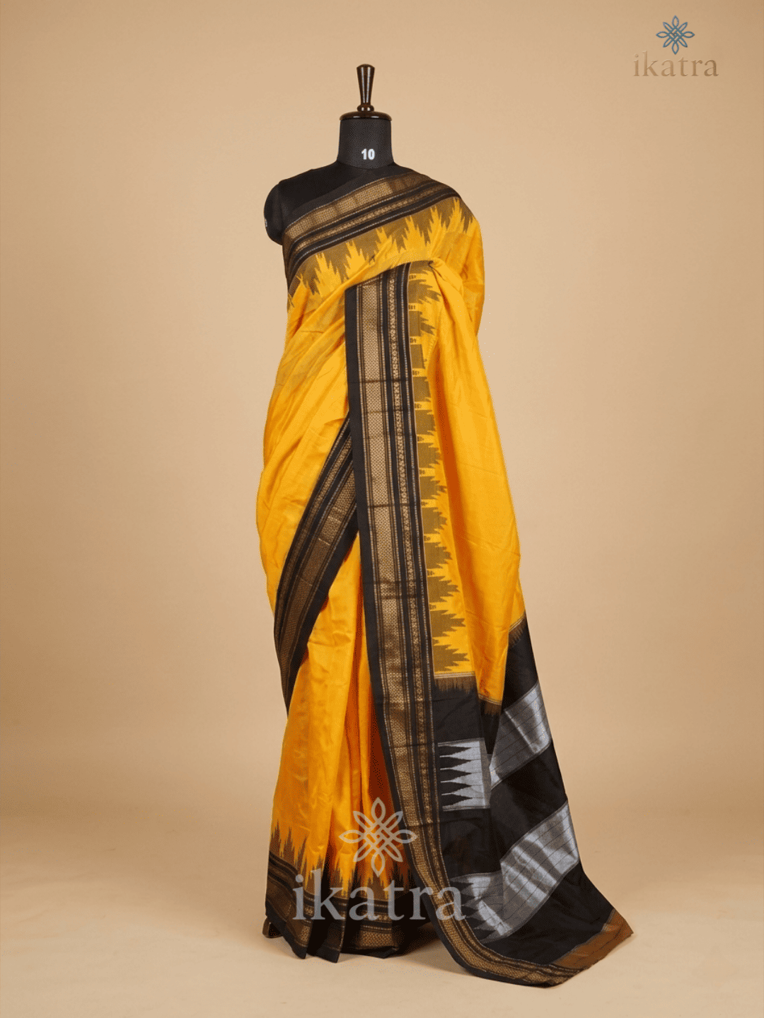 Mustard Yellow Tana Kaddi Checks Ilkal Saree | ikatra
