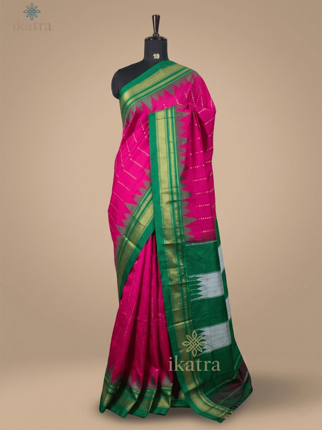 Magenta Ilkal Kasuti Saree – Soft Silk Cotton with Chikki Paras Border & Patti Pallu