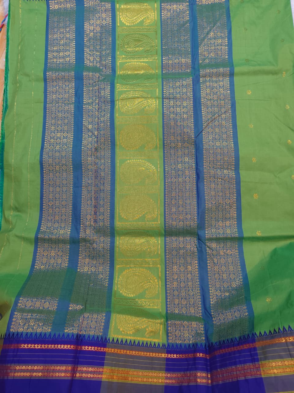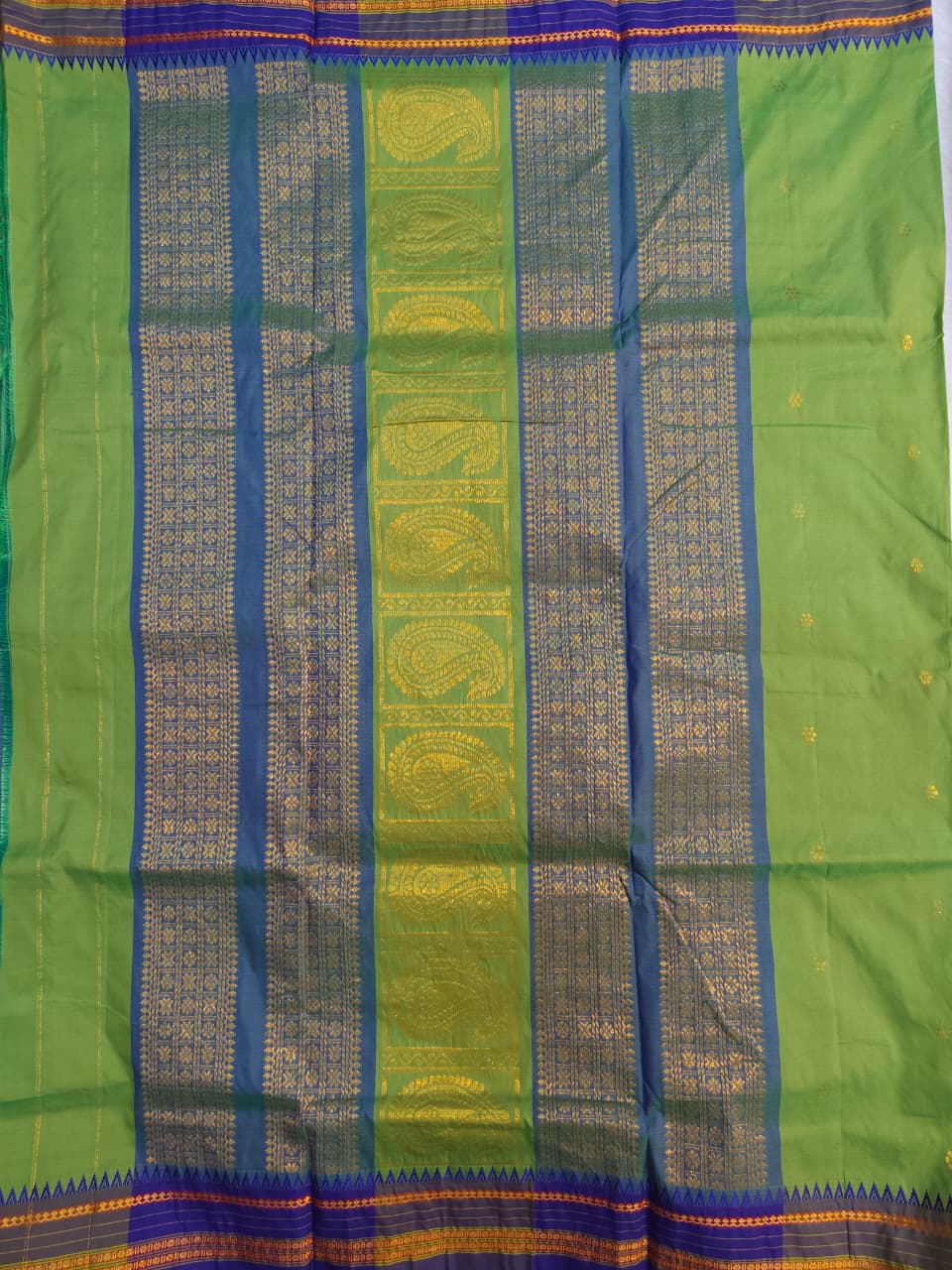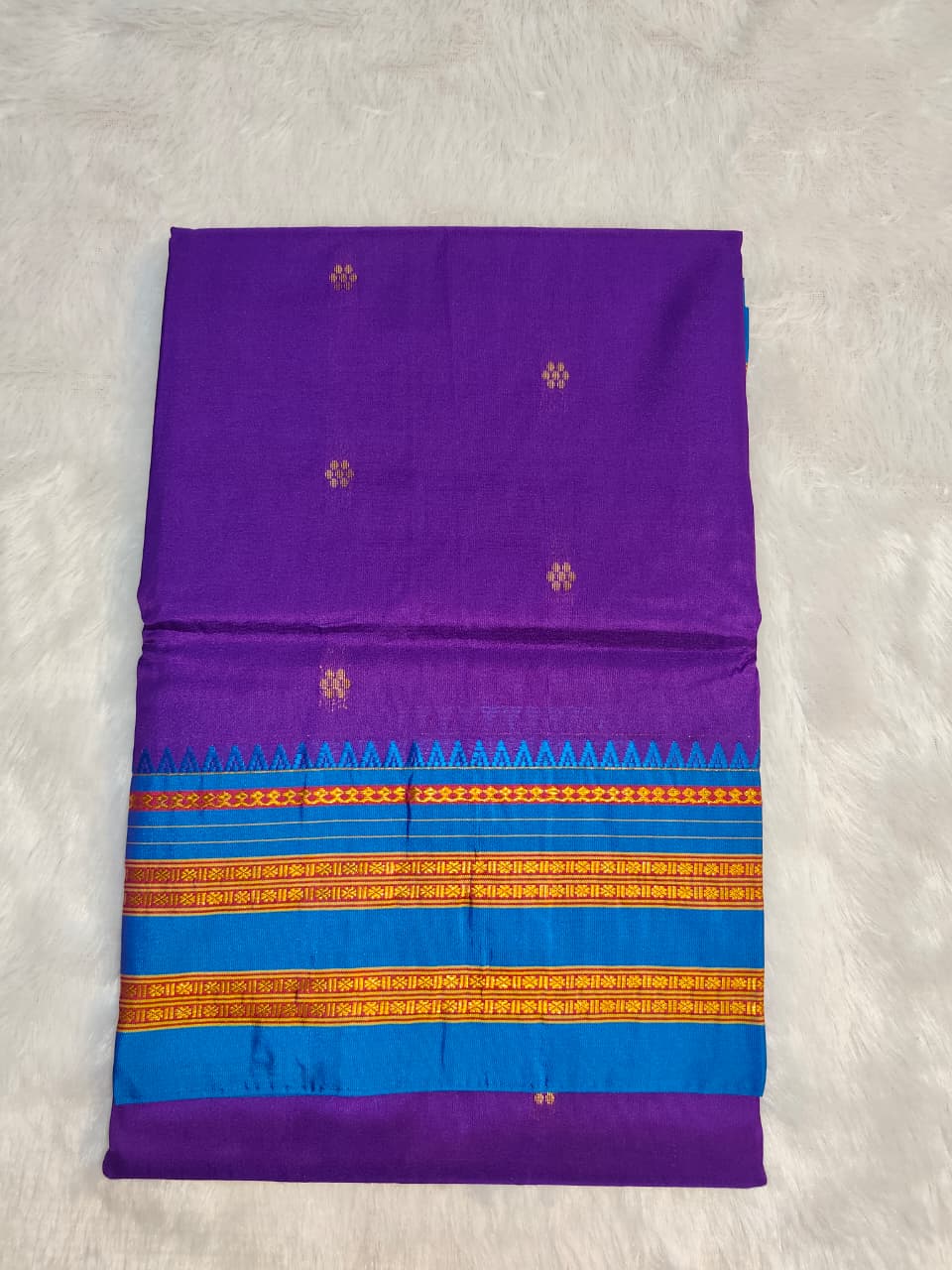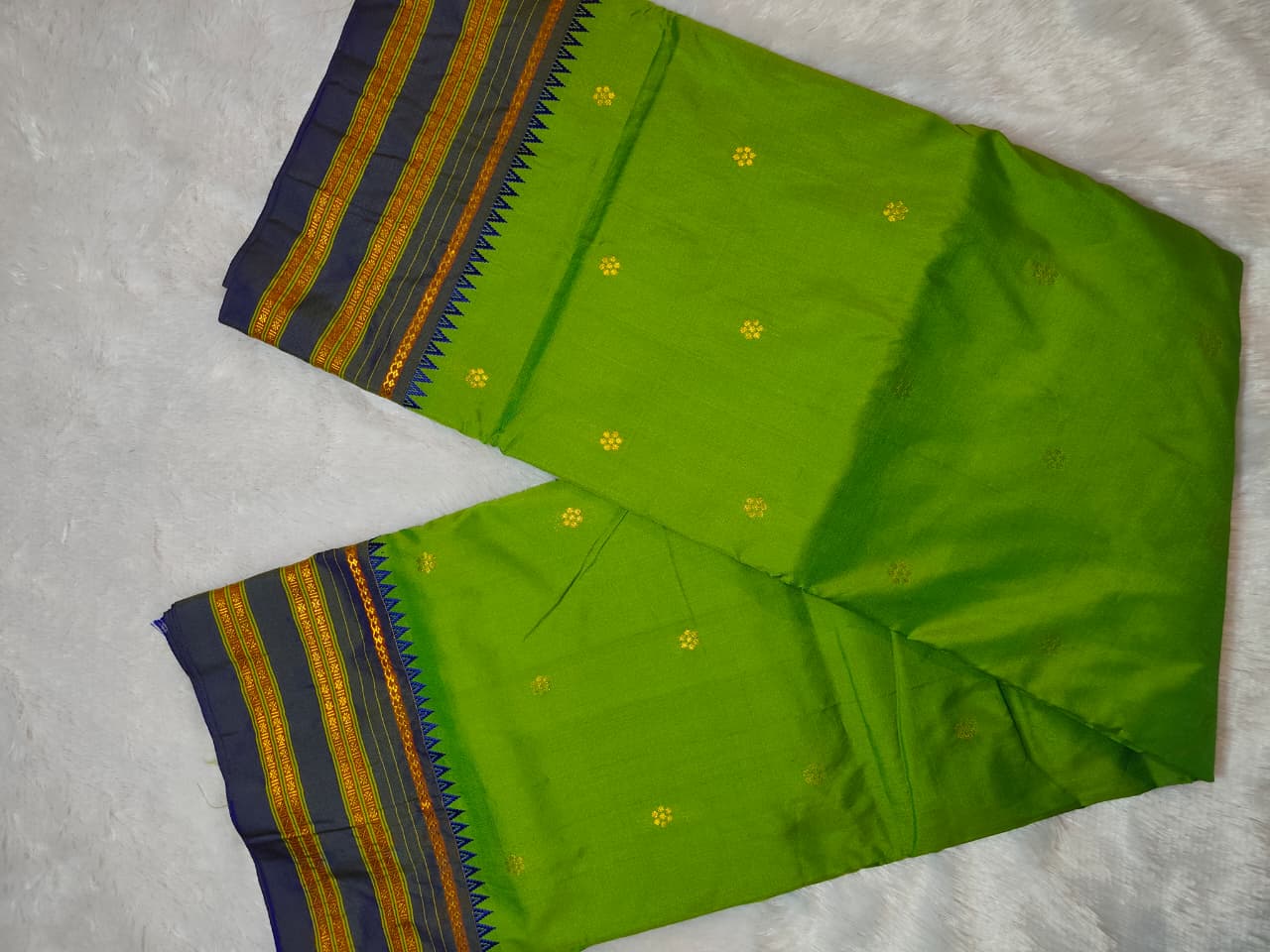 Elegant Narayanpet saree crafted from soft viscus cotton, featuring a gold flower butta border, rich pallu, and attractive shine finish—perfect for festive and traditional occasions.