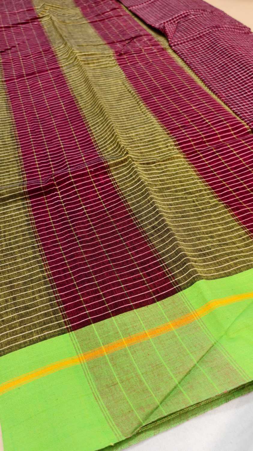 Yellow Green Border Maroon Patteda Anchu Saree With Plain Border