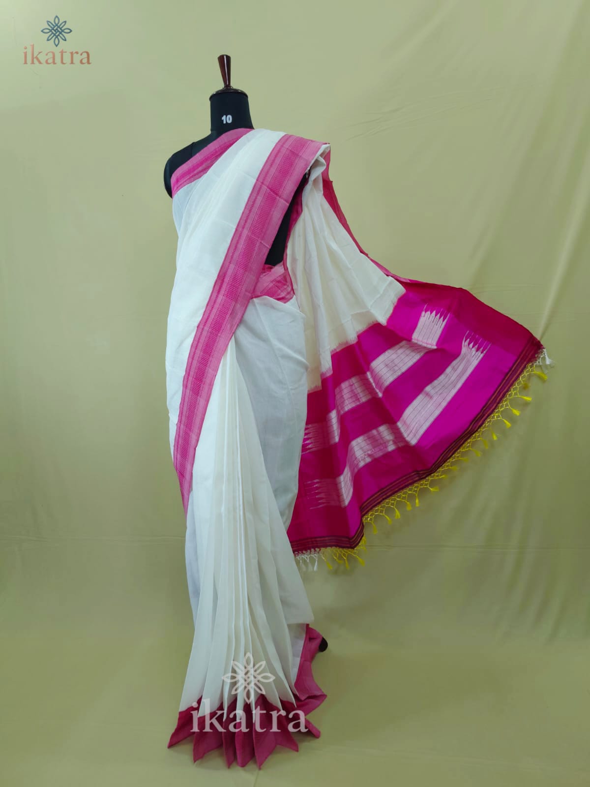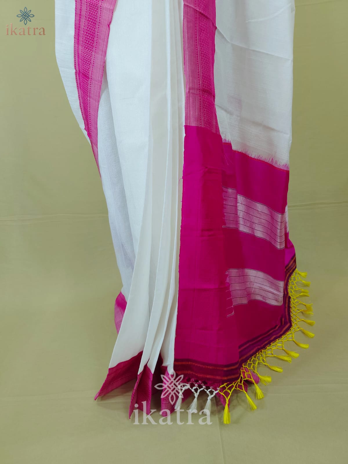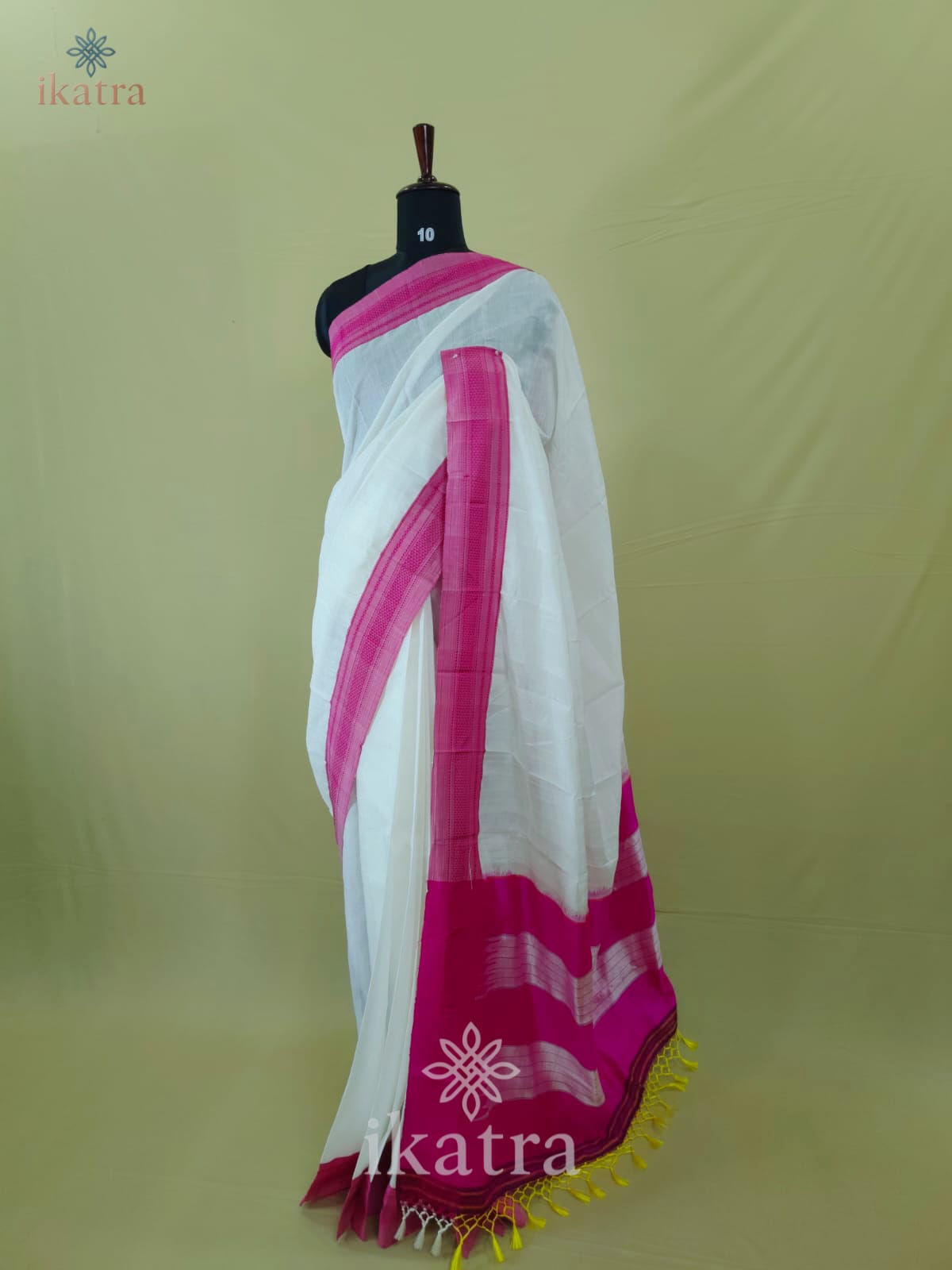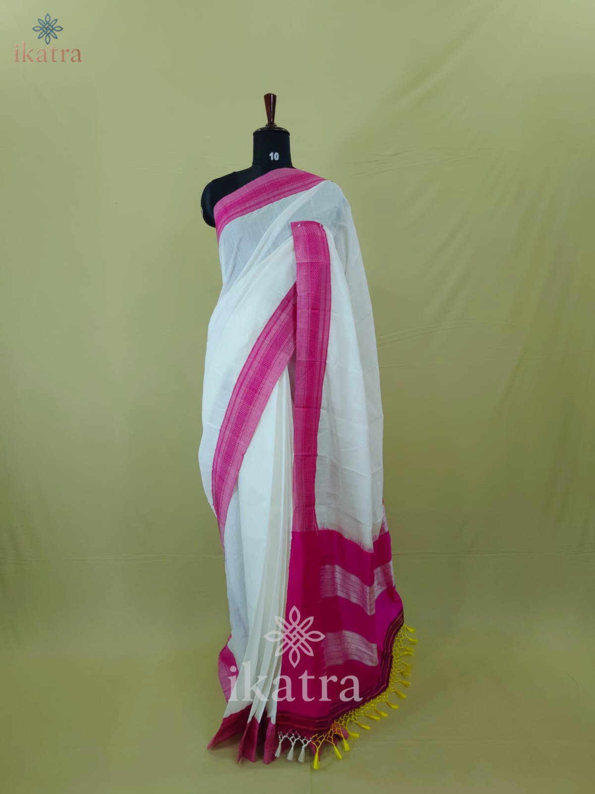 Pure Handloom Ilkal Fancy Chikki Stripes Saree made from premium viscose cotton for a soft and comfortable feel. It features a traditional Chikki Paras border and a rich silk pallu for an elegant look. Comes with a running blouse piece and measures 6.2 meters in length. Handwoven by skilled artisans. Recommended for dry clean or dry wash only. Perfect for daily and festive wear.