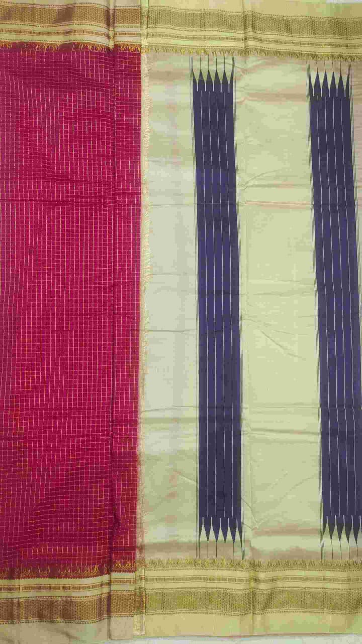 ROYEL RED Tana Kaddi ZARI Checks Ilkal Saree | ikatra