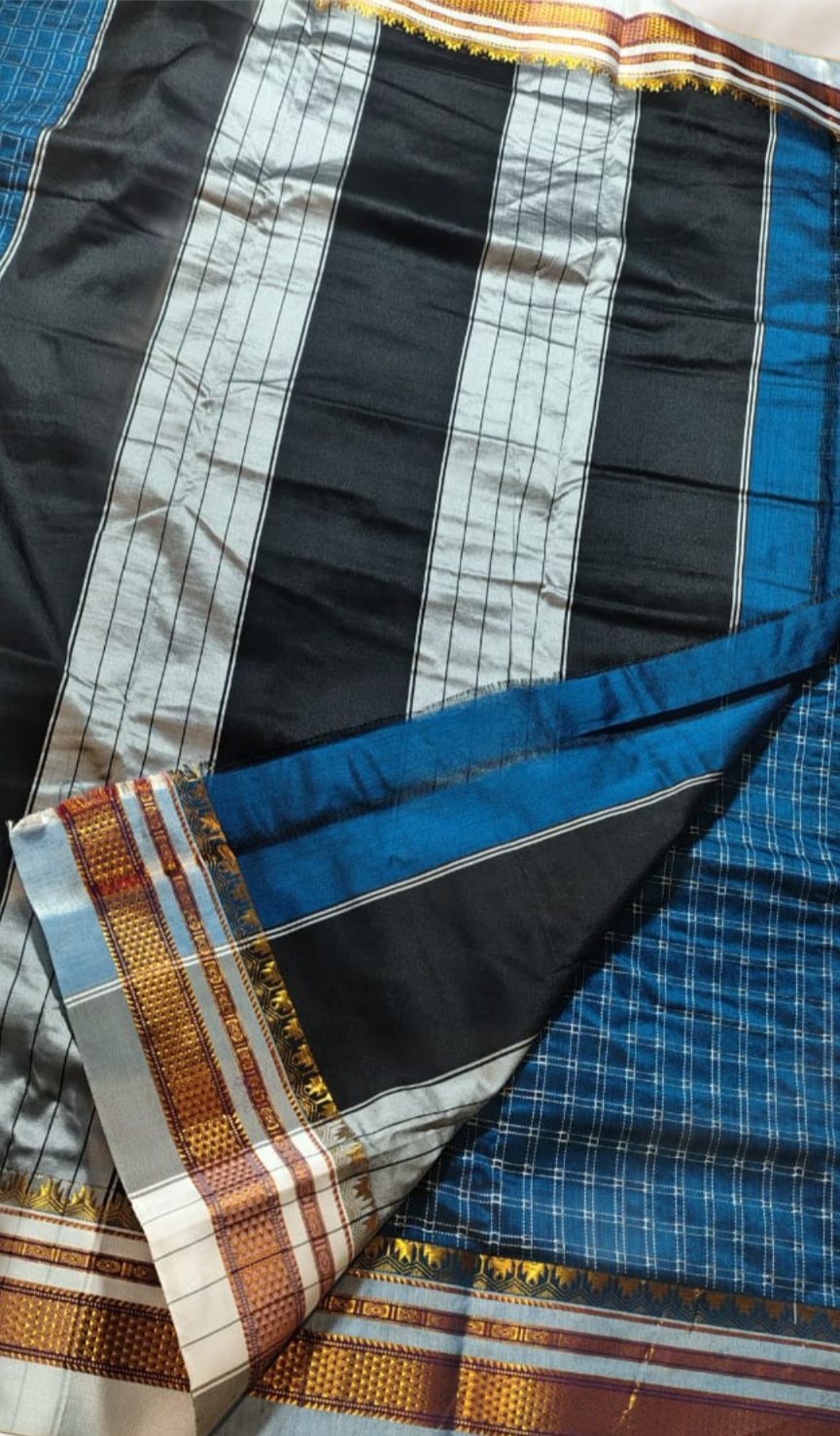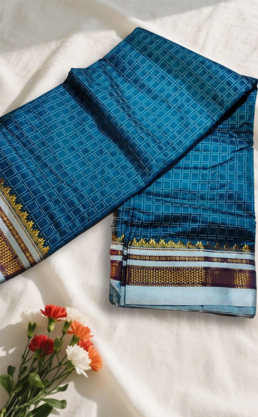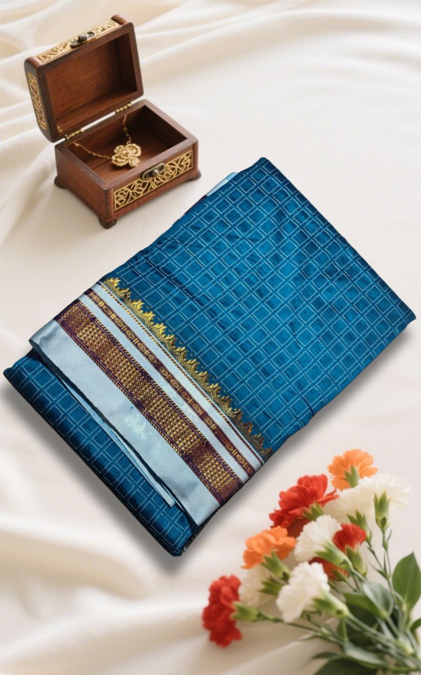 - Saree Name: Teal Blue Zari Checks Ilkal Saree
