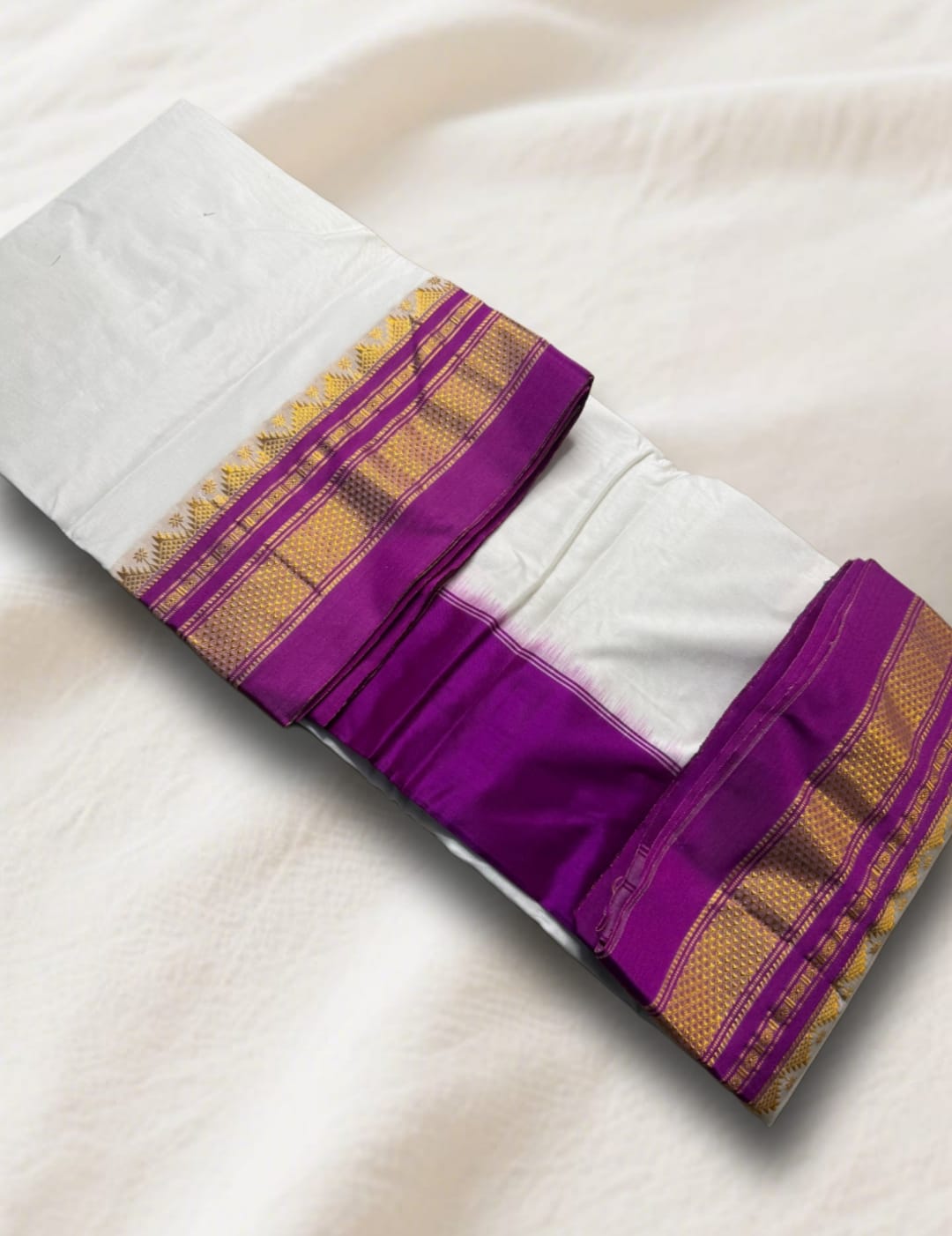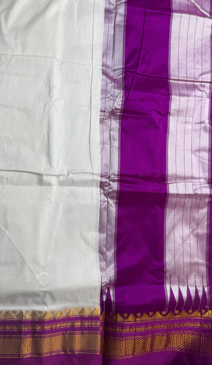 White and purple Tana Warp Plain Ilkal Saree | Pure Silk Pallu