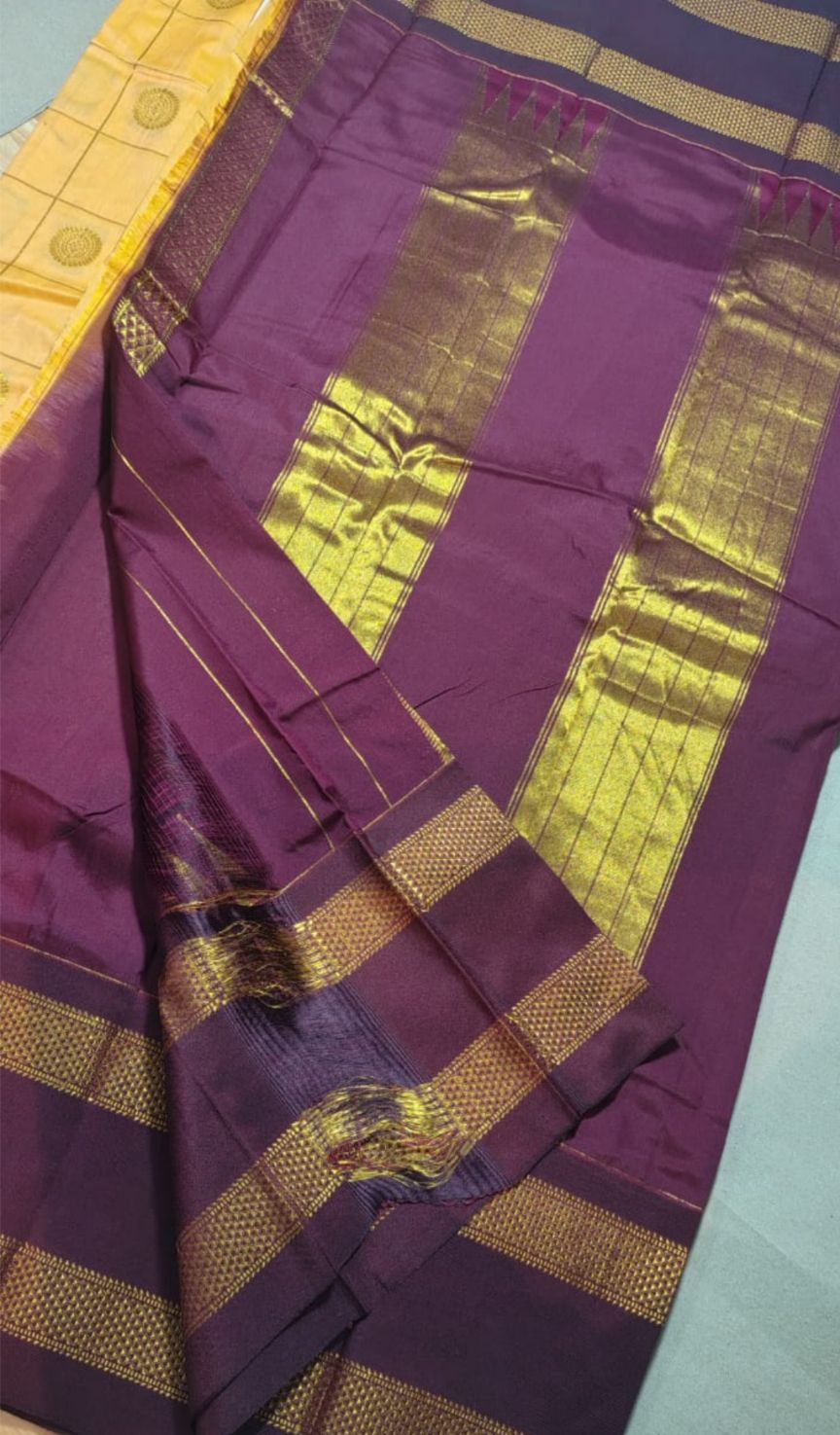 Yellow Pure Zari Butta Ilkal Silk Saree